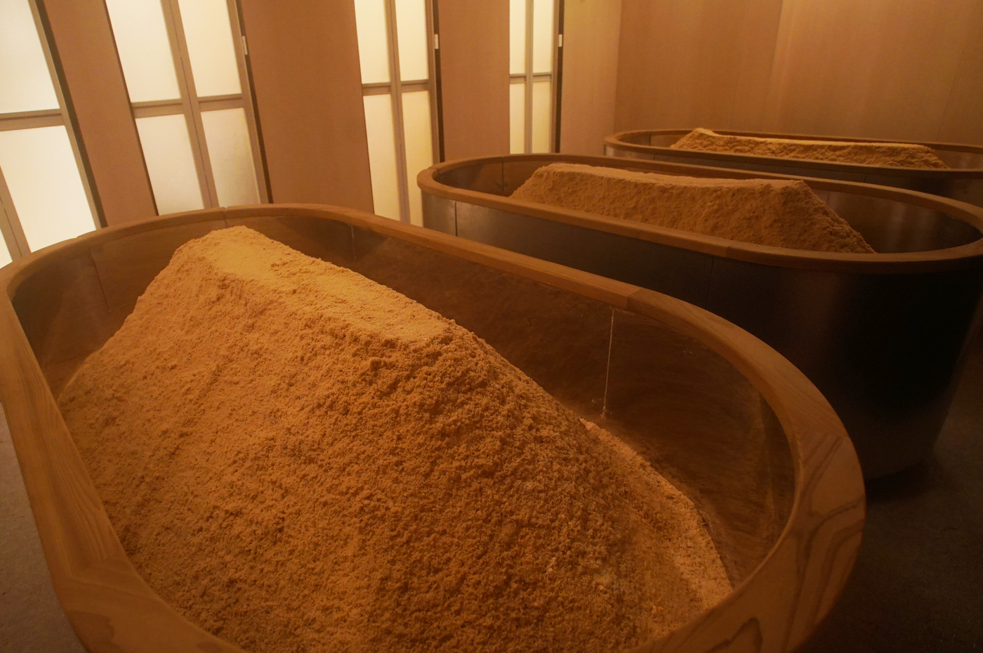 厳選された無垢ヒノキパウダーを使用し、自然素材のみで発酵の温もりをお届けする「えん発酵温熱木浴横浜店」。